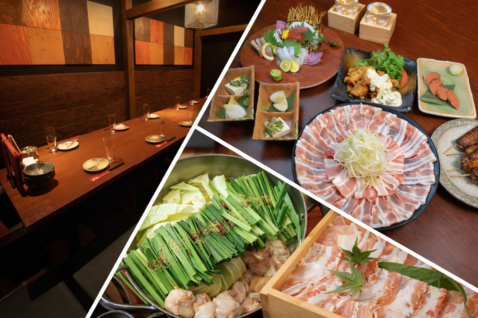 今回は、飲み放題3時間付きの東北コースをご用意。仙台名産の笹かまぼこにはじまり、生本マグロ刺し、牛タンつくね炭火焼き、名物の牛ハラミ炭火焼きまで、しっかり満足感のある内容です。さらにメインは、人気名物の国産牛もつ鍋。会話だけでなくお料理もきちんと楽しめます。