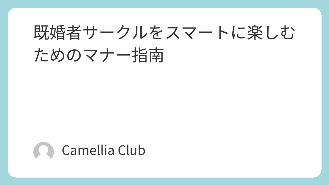 Camellia Club(カメリアクラブ)も、こうした価値観を踏まえて運営されている既婚者サークルの一つです。