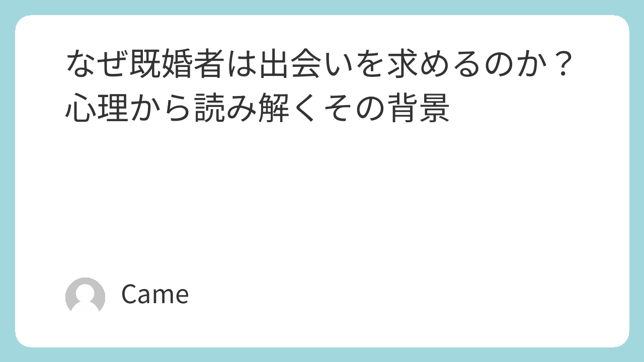 この記事では、既婚者が出会いを求める理由を、感情論ではなく心理的背景から整理していきます。